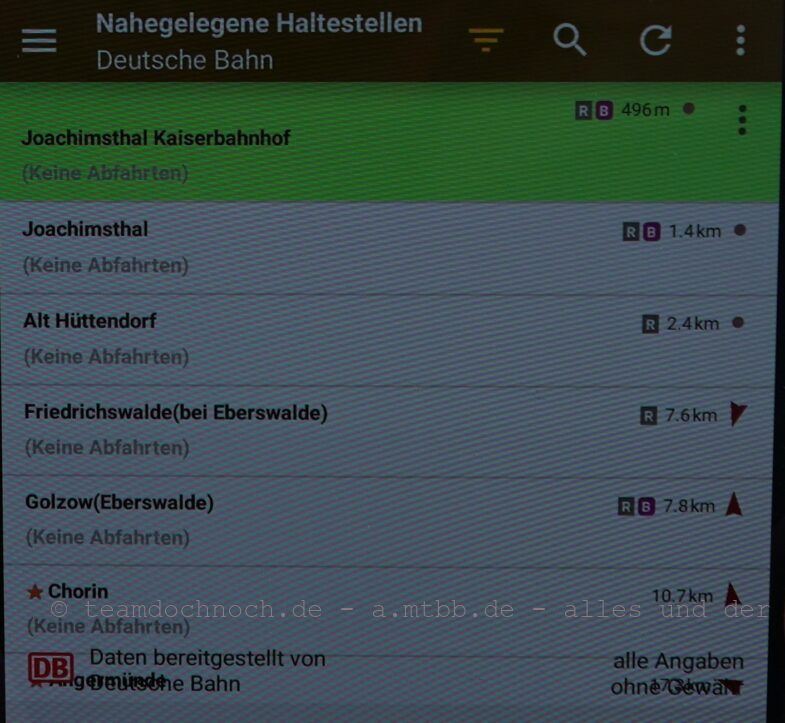 Der Blick auf Öffi verwirrte mich heute etwas. An die unterschiedliche Darstellung je nach gewähltem Verkehrsnetz habe ich mich inzwischen gewöhnt. Aber dass der Bahnhof Kaiserbahnhof bei den von der Deutschen Bahn AG bereitgestellten Daten keine Abfahrten anzeigt, verwirrte mich schon. Die anderen Bahnhöfe der Region zeigten allerdings auch keine Abfahrten.